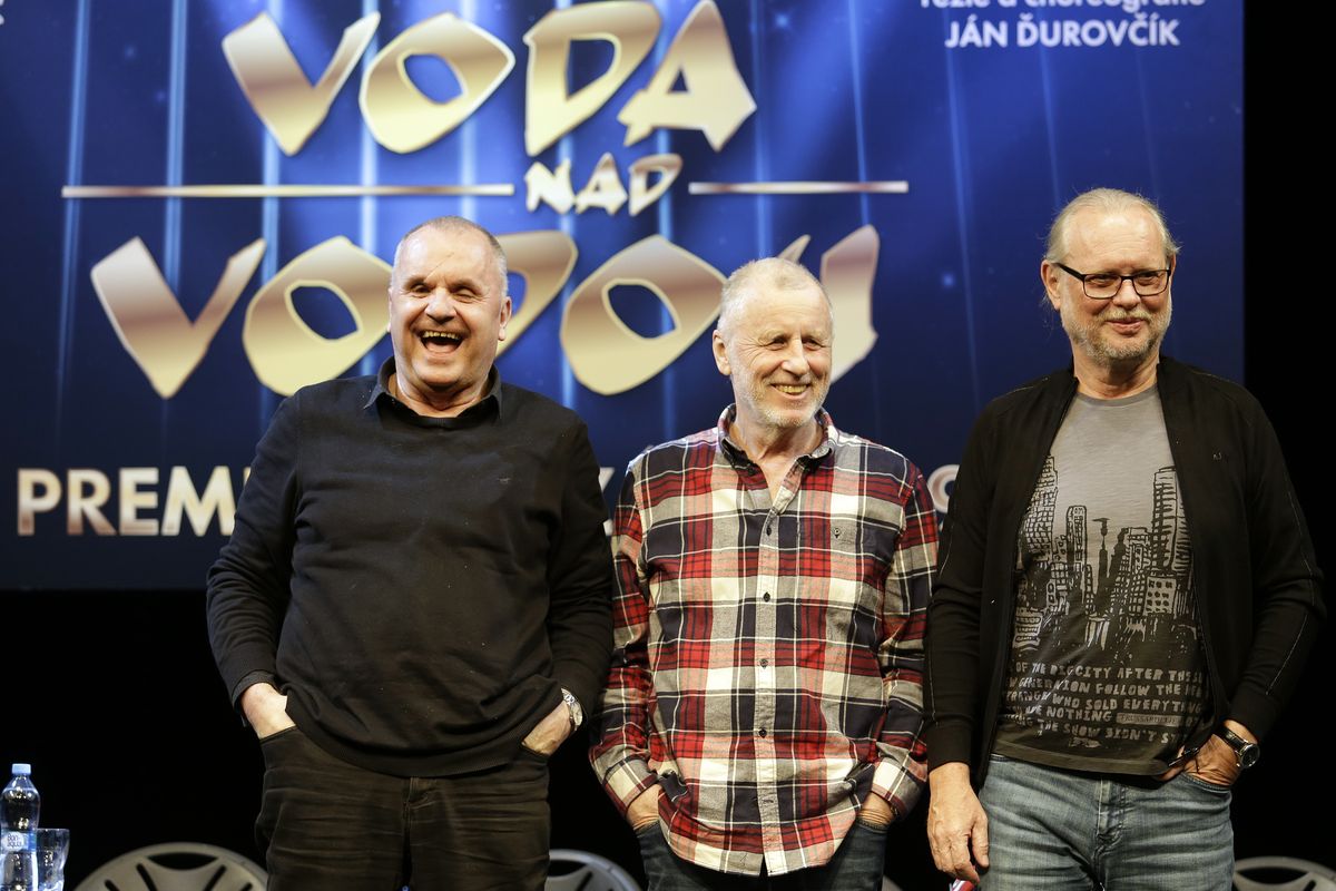 Členové skupiny Elán (zleva Jožo Ráž, Ján Baláž a Vašo Patejdl) se zúčastnili 27. března 2019 tiskové konference k plánovanému uvedení nového muzikálu Voda nad vodou, který od 5. září 2019 uvede divadlo Kalich