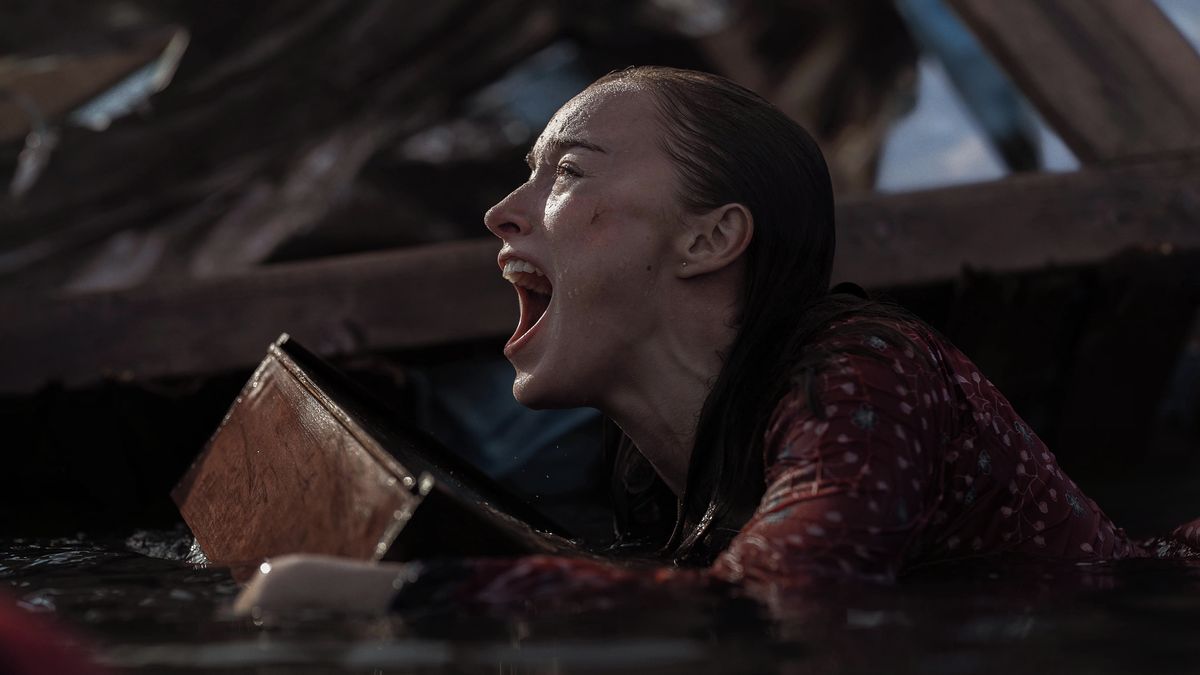 Phoebe Dynevorová jako těhotná protagonistka, která uniká zabijáckým žralokům.