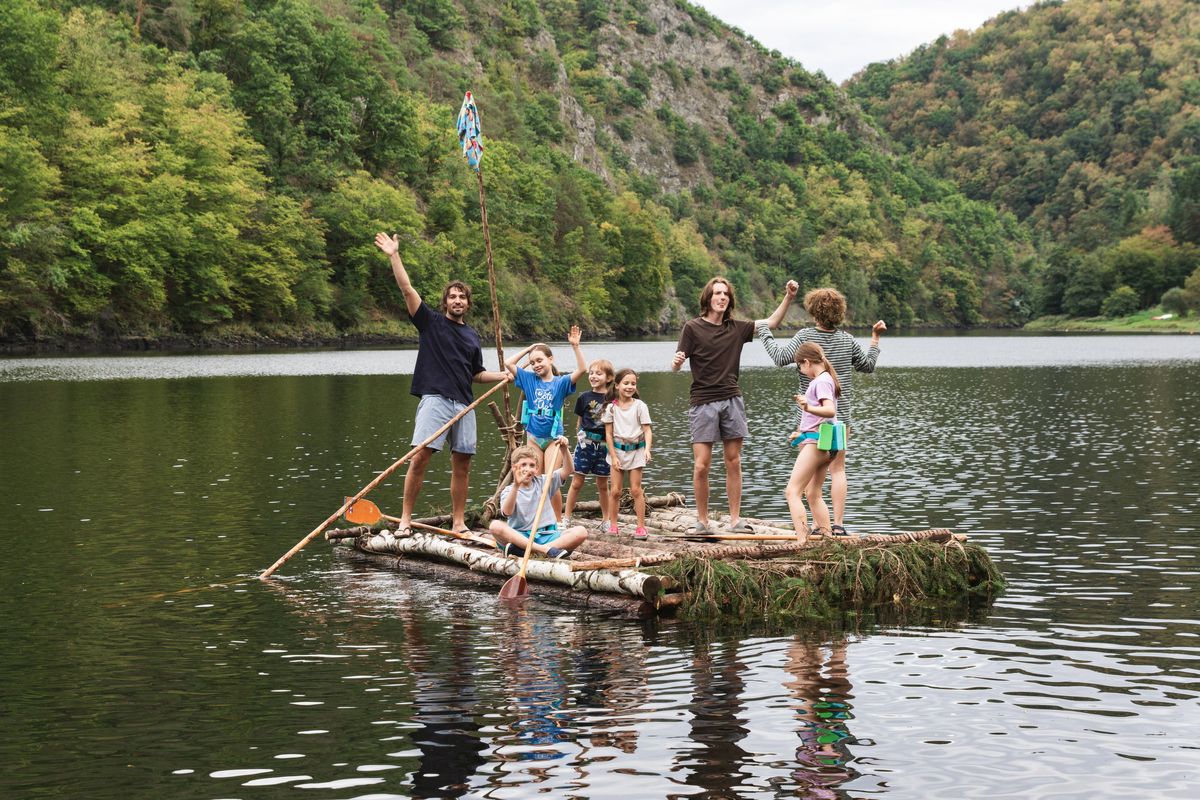 Pak už jen sledujeme, jak všichni radostně a šťastně dovádějí. Když se Petr ujme těch asi osmi dětí různého věku, které se na první dobrou skamarádí, vypráví jim i divákům například historii Svatojánských proudů. A děti zatouží mít také vor, na jakých se plavilo dříví. Nejspíš mávnutím proutku postaví Petr vzápětí bytelný vor, který by vskutku uvezl slušnou partu dávných plavců. Děti se strejdou Frantou (Vyorálek) zase postaví stejně snadno obří voliéru pro papouška a všichni společně oslaví Denisiny narozeniny.