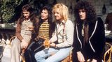Queen v roce 1977, zleva kytarista Brian May, bubeník Roger Taylor, zpěvák Freddie Mercury a baskytarista John Deacon