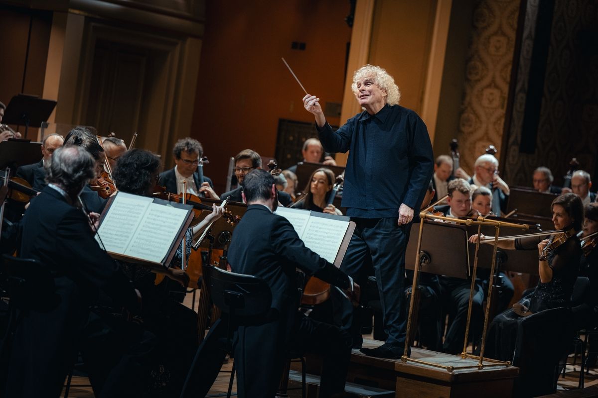 Simon Rattle řídil během koncertu hned dvě filharmonická tělesa.