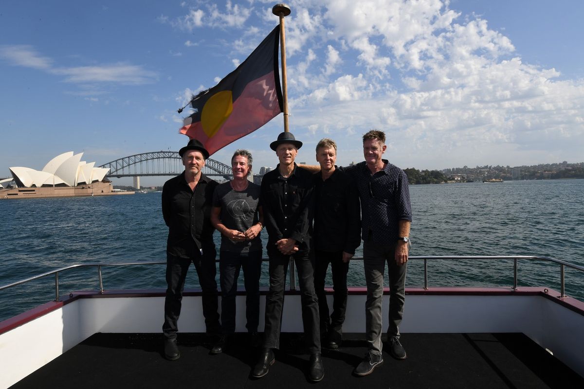 Skupina Midnight Oil v roce 2017. Zleva Jim Moginie, Rob Hirst, Peter Garrett, Martin Rotsey a Bones Hillman
