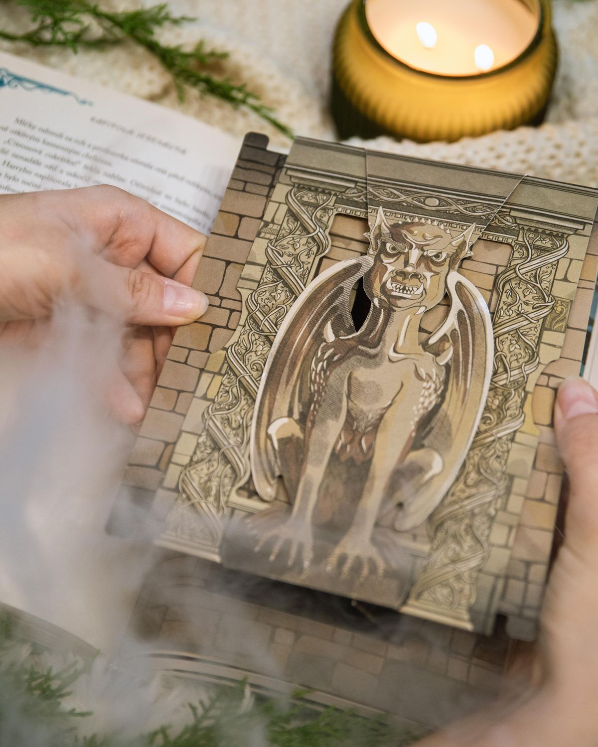 Ukázka interaktivního prvku z knihy Harry Potter a Tajemná komnata, o jejíž nové vydání se postaralo duo MinaLima.