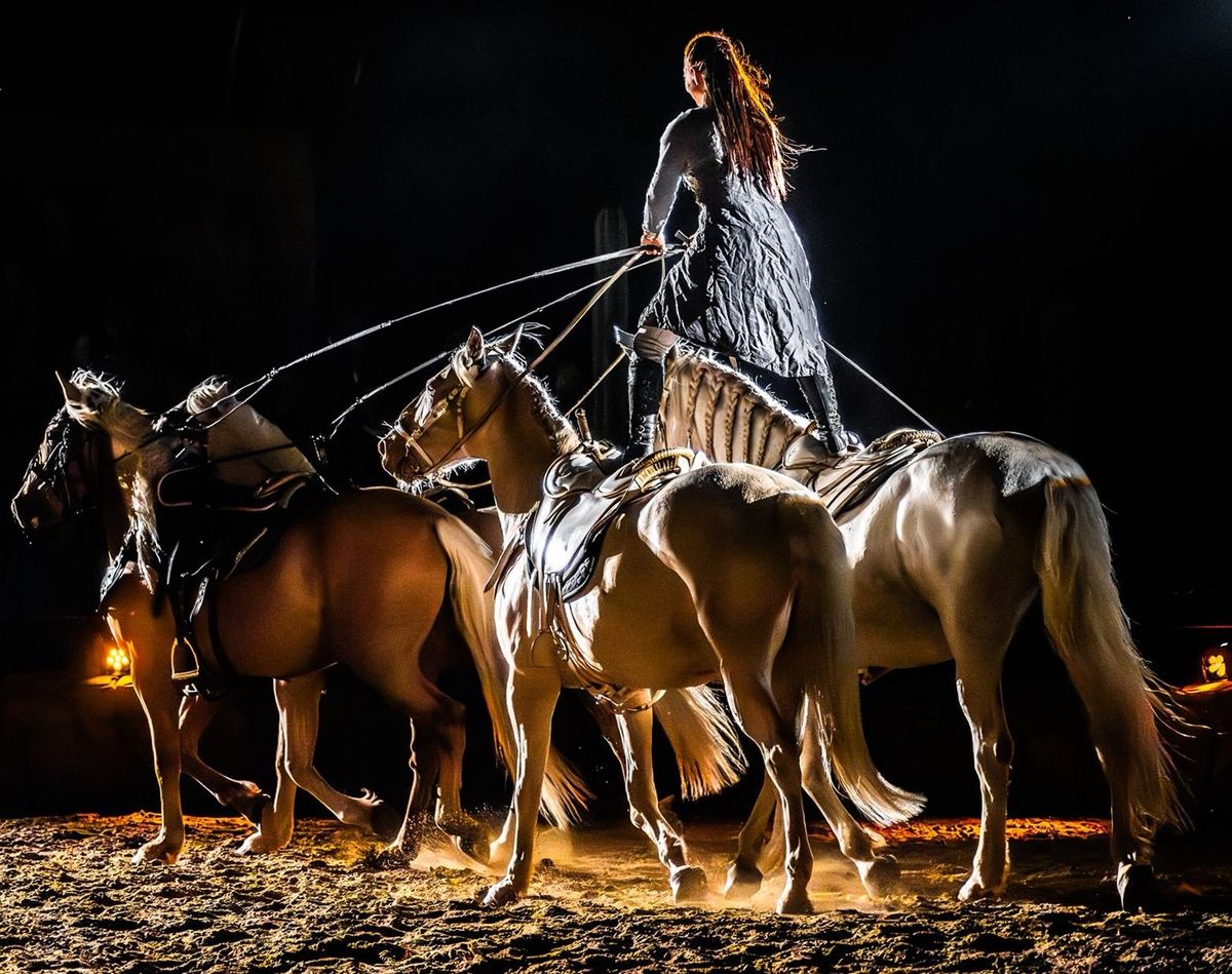 Triková jezdkyně Natálie Nováková při vystoupení Kůň Pátý Element