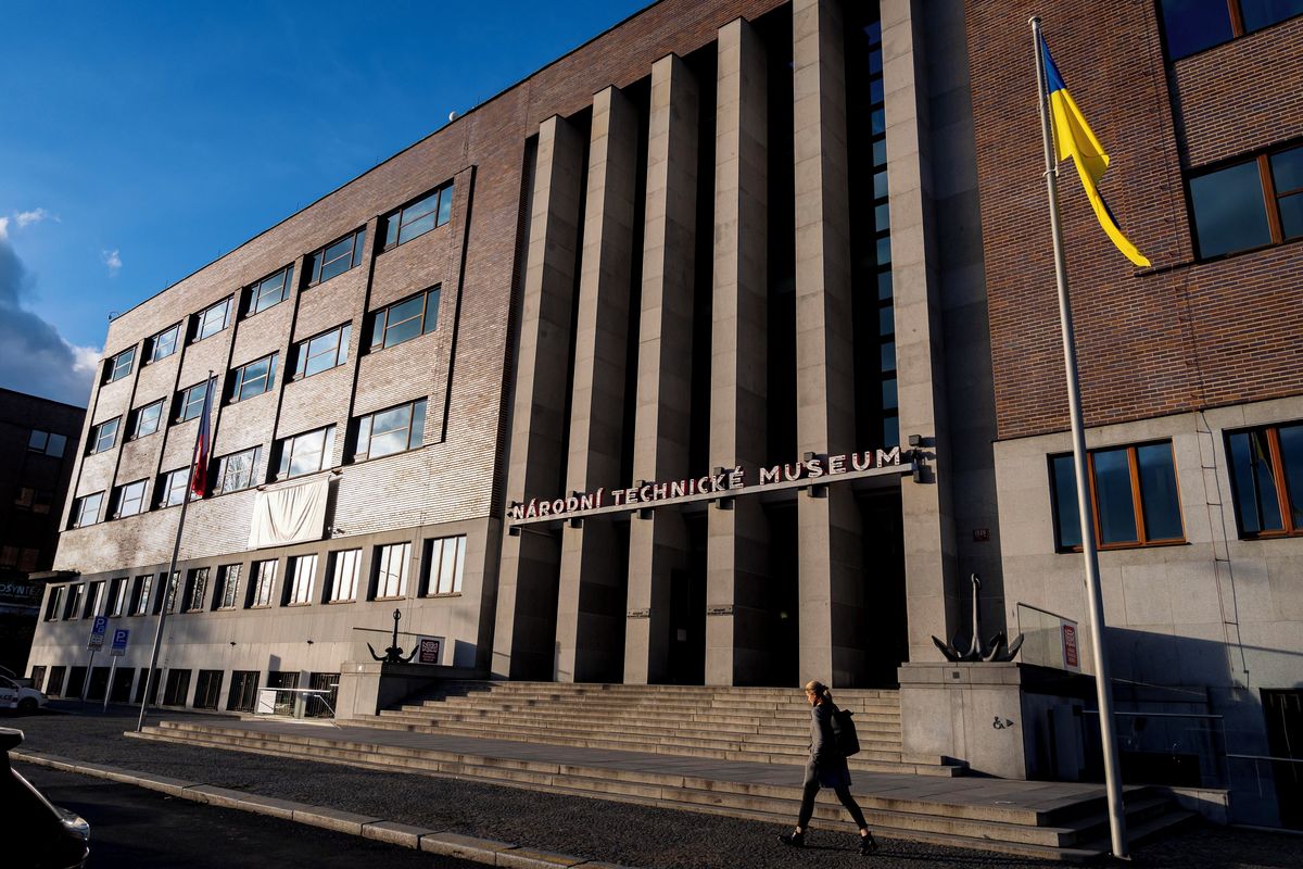 Přítomnost, či nepřítomnost ukrajinských vlajek na budovách českých institucí. Na snímkuu z 11. listopadu 2025 Národní technické muzeum.