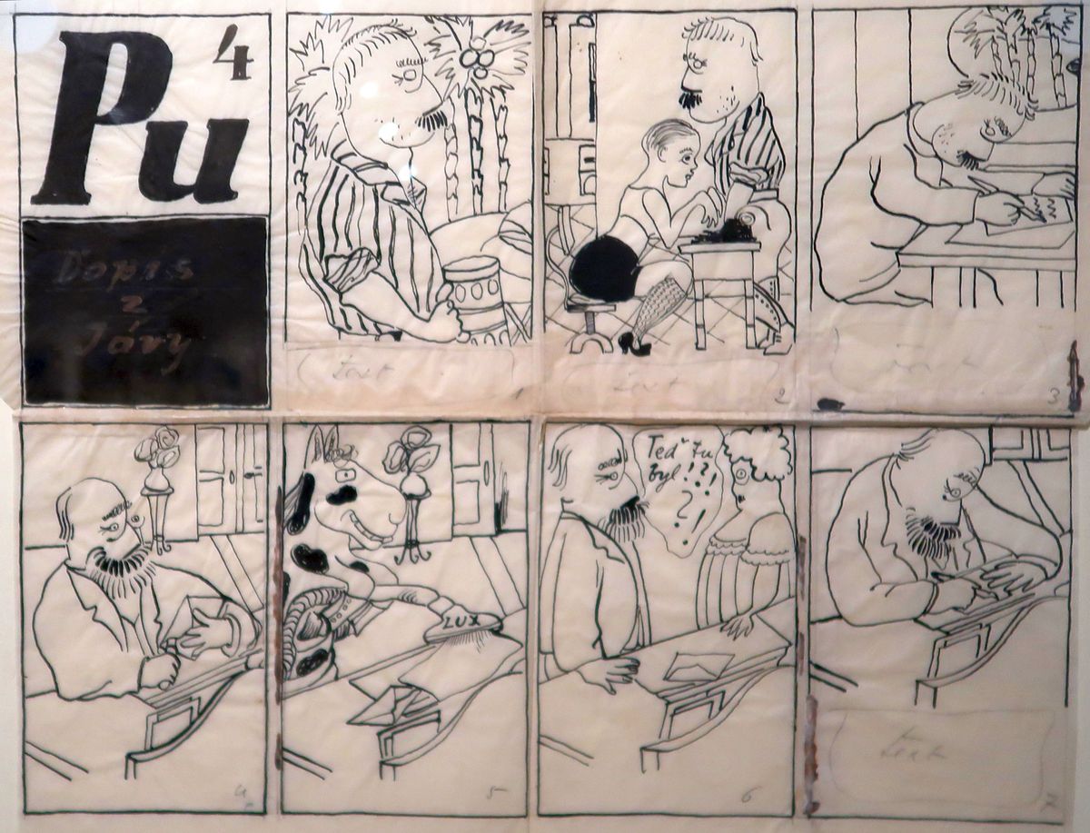 Kromě zásadních obrazů a kreseb se výstava věnuje i ilustracím. Nechybí například výtvarný doprovod knihy Ztracený ráj Pierra Jeana Jouva. Anebo svým způsobem rarita - absurdní dadaistický komiks Kůň Pu, který Šíma vytvářel pro Lidové noviny.