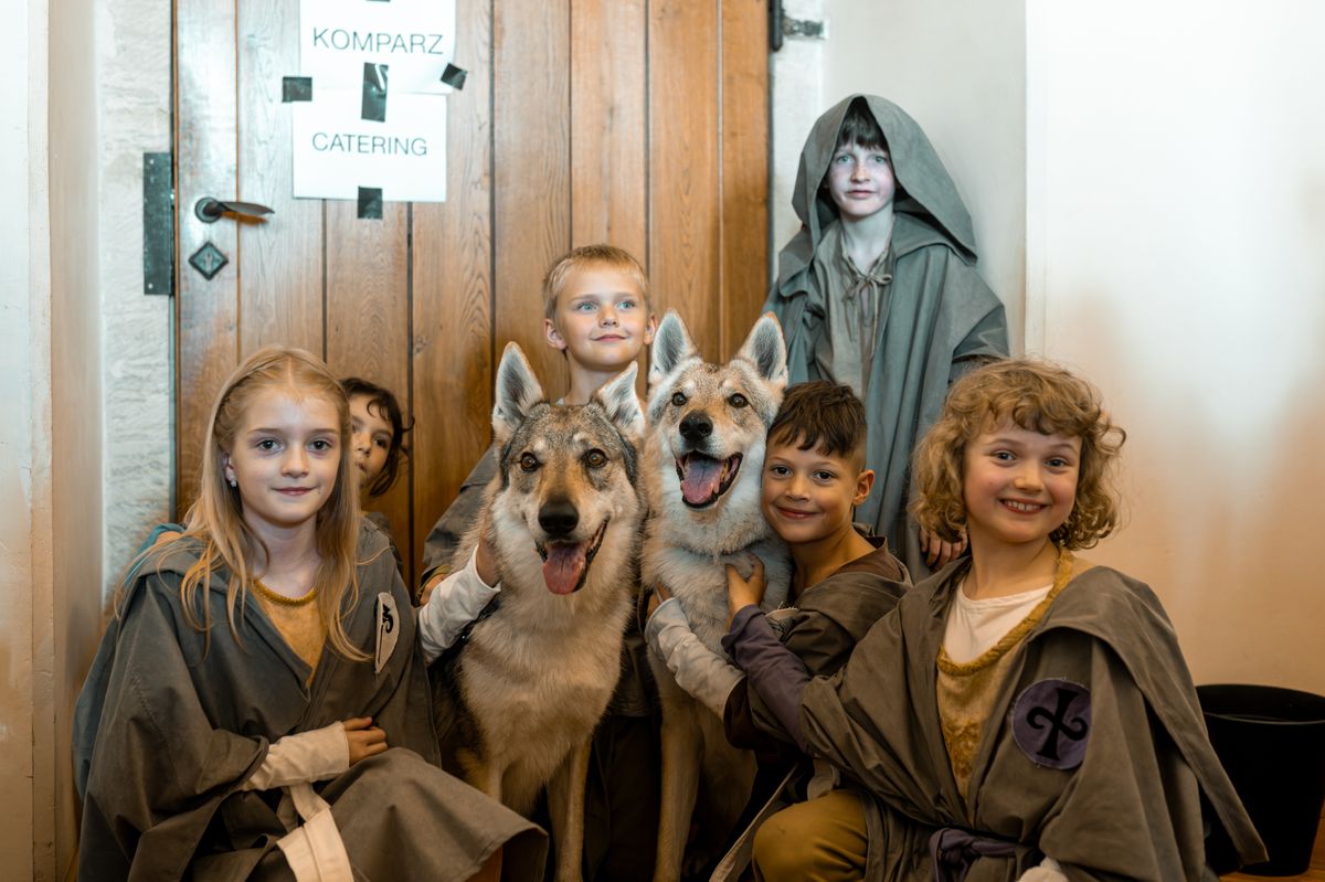 Dětský komparz při natáčení, na place nechyběla ani zvířata.