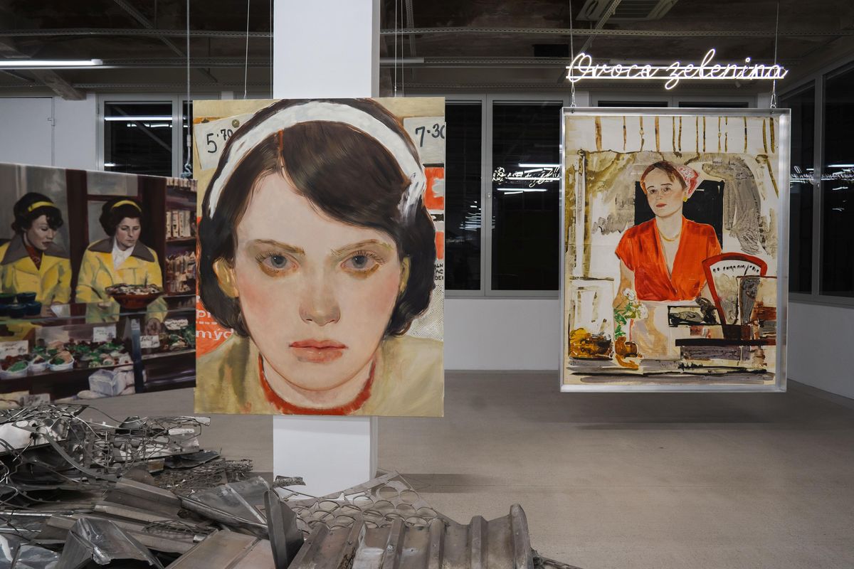 Všechny tři autorky využívají malbu k tomu, aby znovu objevily a přetvořily vzpomínky na minulost. Jejich obrazy na výstavě doplňuje rozsáhlá instalace z kovového lesklého odpadu, který je navršen uprostřed výstavního sálu a může evokovat použité a v době supermarketů nepotřebné prodejní pulty. Návštěvníci si mohou prohlédnout také video s výpověďmi umělkyň rámované záběry ze seriálu Žena za pultem, jehož propagandistický rozměr výstava neřeší.