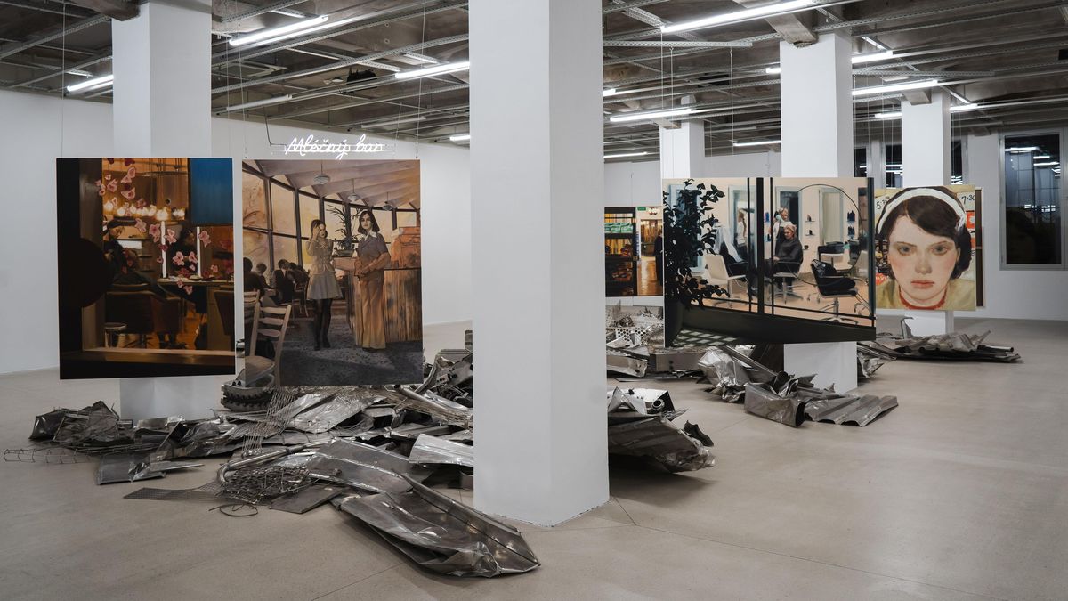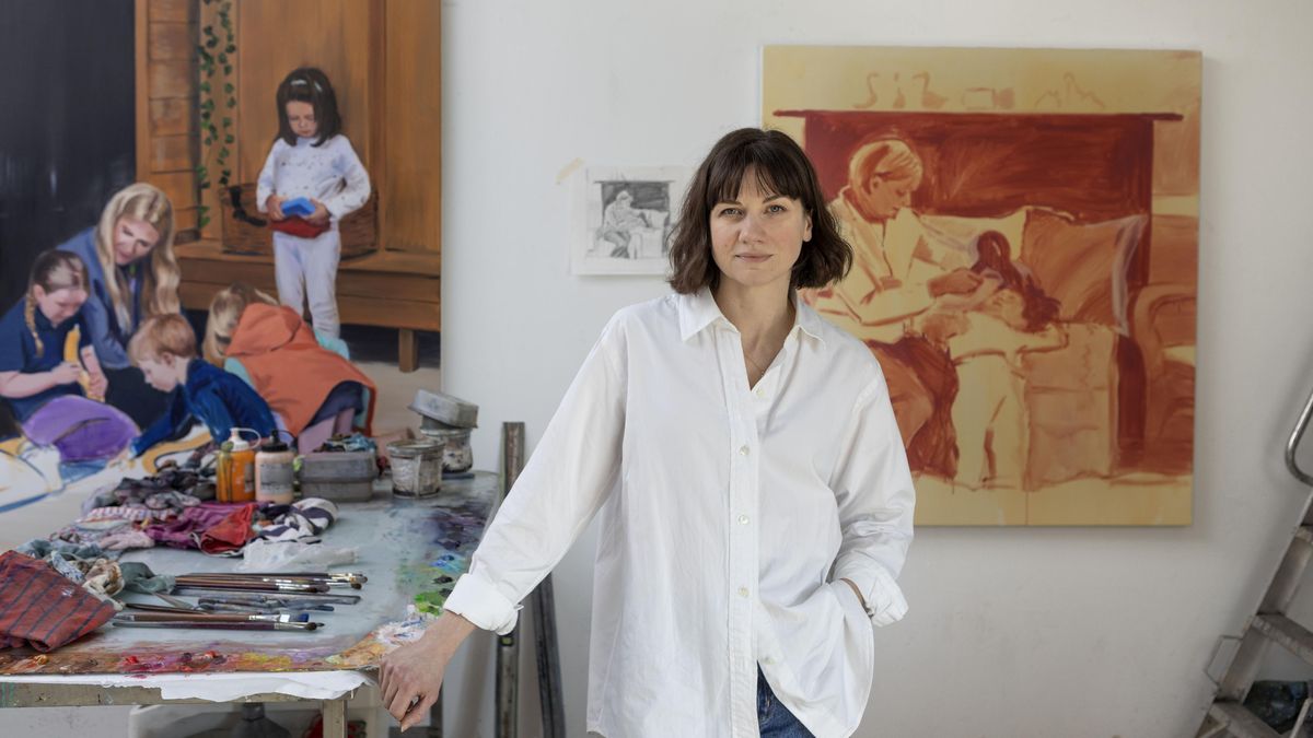 Caroline Walkerová (1982) se zaměřuje na zobrazení ženské identity a každodennosti v prostředí, kde se prolíná soukromé s veřejným. Je známá realistickými malbami žen při běžných činnostech, třeba v salonech krásy, skrze které zkoumá sociální kontext i tvorbu komunity. Před vernisáží řekla, že velkou inspirací jí v londýnských ulicích jsou chvíle, kdy se už stmívá, obchody ale ještě mají otevřeno, takže je do jejich osvětlených prostor vidět z ulice, a lze tak pozorovat činnosti, které se v nich odehrávají.