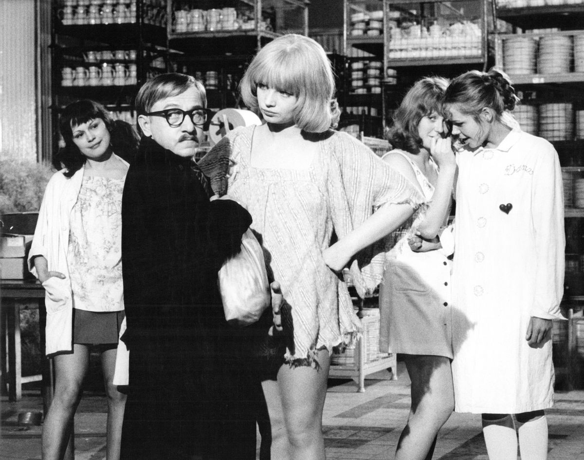 Marta Rašlová jako sexy skladnice. Na snímku se jí bojí Mnislav Hofmann.