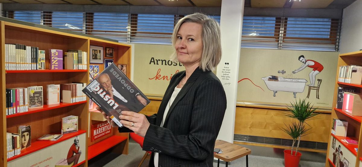 Mluvčí Moravské zemské knihovny Anna Mrázová v Knihovně Arnošta Lustiga.