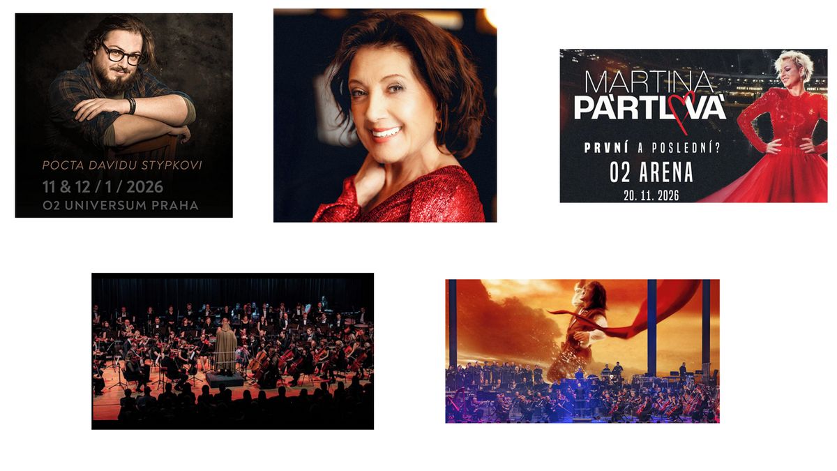 Vstupenky na koncerty: Pocta Davidu Stypkovi, 12. ledna 2026, O2 universum; Marie Rottrová 2025-2026, 11. 1. 2026, Brno Starez Aréna Vodova; Martina Pártlová, 20. 11. 2026, O2 Aréna; Pražský filmový orchestr, pod taktovkou Jiřího Korynty s vizuálními efekty, 14. 2. 2026, Nová Spirála, Výstaviště Praha; Vangelis – Original Symphonic Concert, speciální host Daniel Hůlka, 27. 2. 2026, O2 universum.