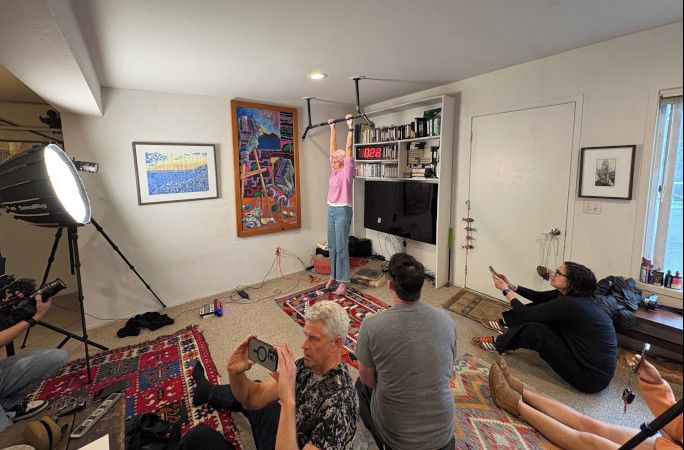 Esselstynová si na hrazdě nejdříve vyzkoušela kratší časy a postupně se zlepšovala. Po několika týdnech tréninku se cítila připravená. Rekordní pokus pak proběhl začátkem března v její domácnosti v americkém státě Ohio, za přítomnosti rodiny, sousedů, trenérů a dalších přihlížejících.