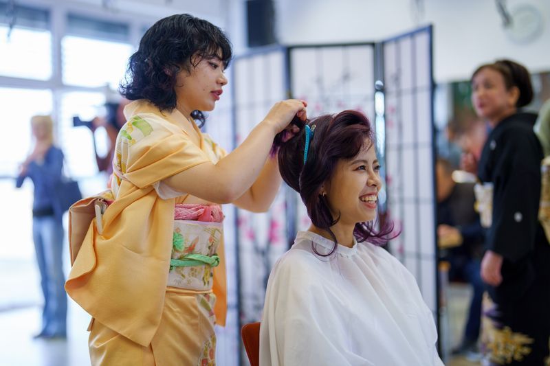 Poté, co mladému páru oblékli všech asi deset vrstev oblečení svatebního japonského kimona, odvedli je do zákulisí, kde se dozvěděli, co je přesně čeká. Za malý okamžik se ocitli na pódiu před plným sálem. Tentokrát si řekli své ano ne v češtině, ale v japonštině. Naštěstí i zde byl pro ně připravený překladatel.
