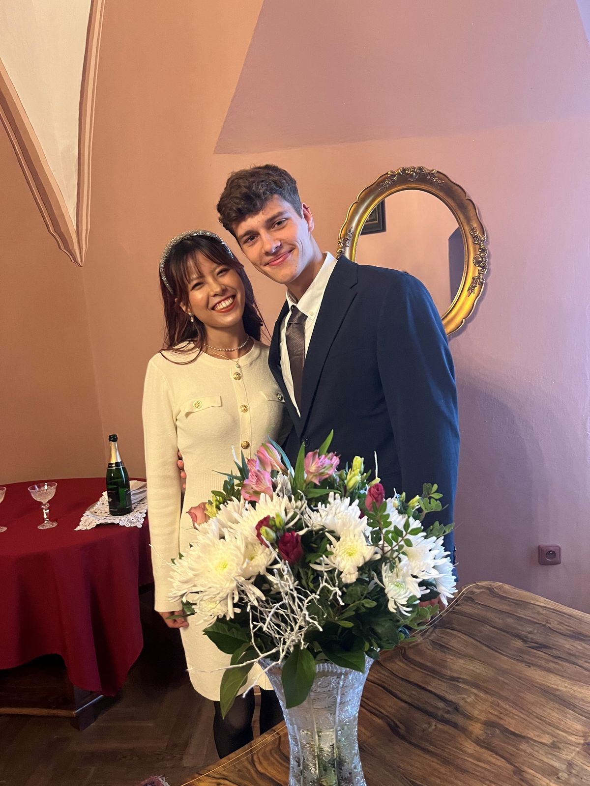 Druhá svatba, 17. října v Ostravě, byla pro mladý pár zcela nečekaná. Napsala jim totiž kamarádka, že jí na Facebooku vyskočila reklama na festival Japonských dnů v Ostravě, kde hledali česko-japonský pár.