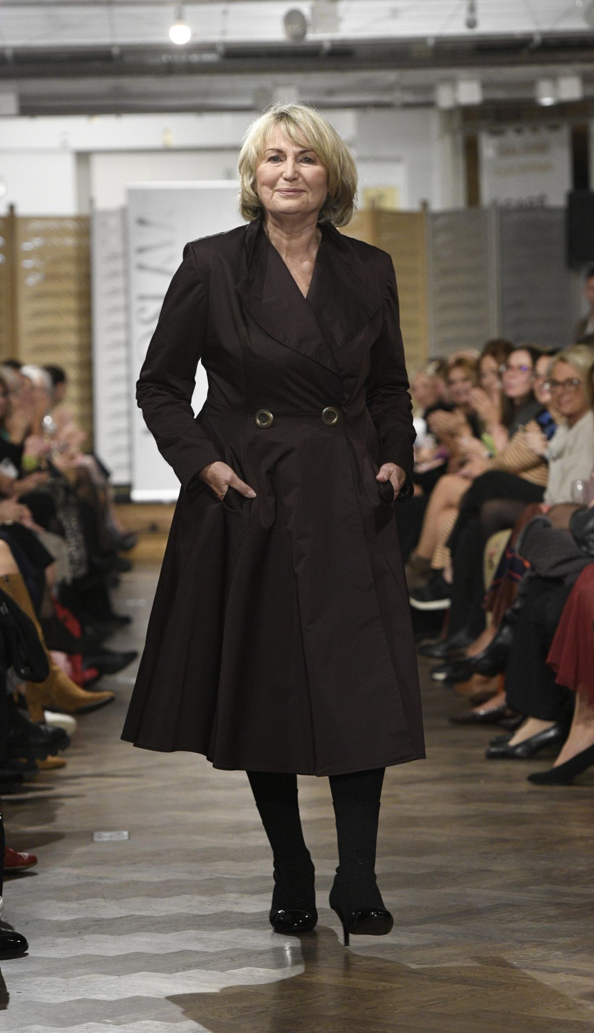 V její nové kolekci jsme tak mohli vidět spoustu pohodlných pletených svetrů, vzorovaných kardiganů, žebrovaných ponč, stylových elegantních i ležérních kabátů v různých materiálech i barvách, kterým dominovaly podzimní tóny hnědé, šedé, khaki i olivově zelené. Z výraznějších barev pak měla své zastoupení sytě růžová a královská modrá.