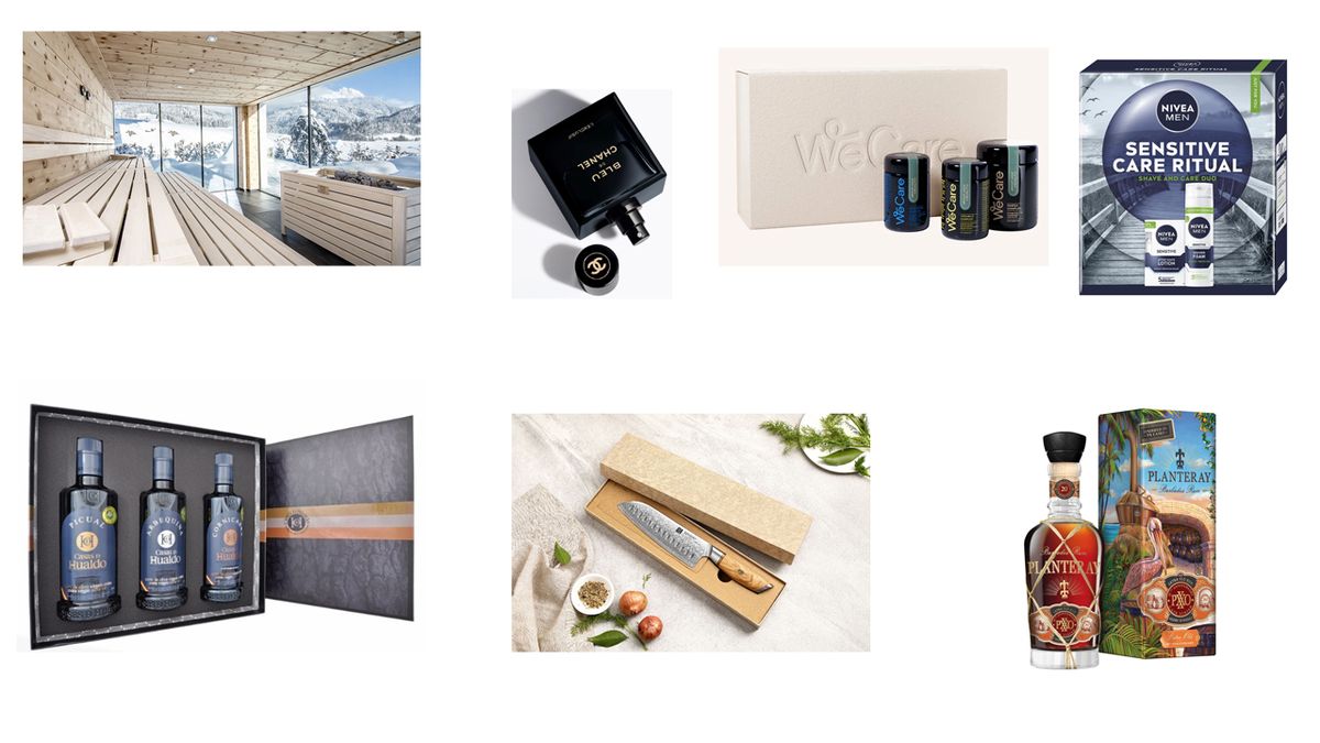 Poukaz na Lyžování a wellness v srdci Alp - Leogang resort Puradies s jedinečným wellness centrem Heaven Spa, puradies.com od 5000 Kč; Bleu de Chanel L’exclusif Parfém, s intenzivními dřevitými a koženými tóny, douglas.cz od 4700 Kč; WeCare Dárková sada Omega Complex + Vitamin C Complex + Magnesium Complex, wecareabout.cz 1790 Kč; Nivea Men Sensitive Care Ritual, dárková sada 489 Kč; Dárkové balení prémiových olivových olejů Arbequina, Picual a Cornicabra od Casas de Hualdo (3× 500 ml), olivum.cz 1365 Kč; Prémiový designový Santoku nůž XinZuo Lan B37 7", xinzuo.cz od 2399 Kč; Rum Planteray PXXO 20th Anniversary, prochází třetí fází zrání v sudech po sladkém sherry, warehouse1.cz 1540 Kč