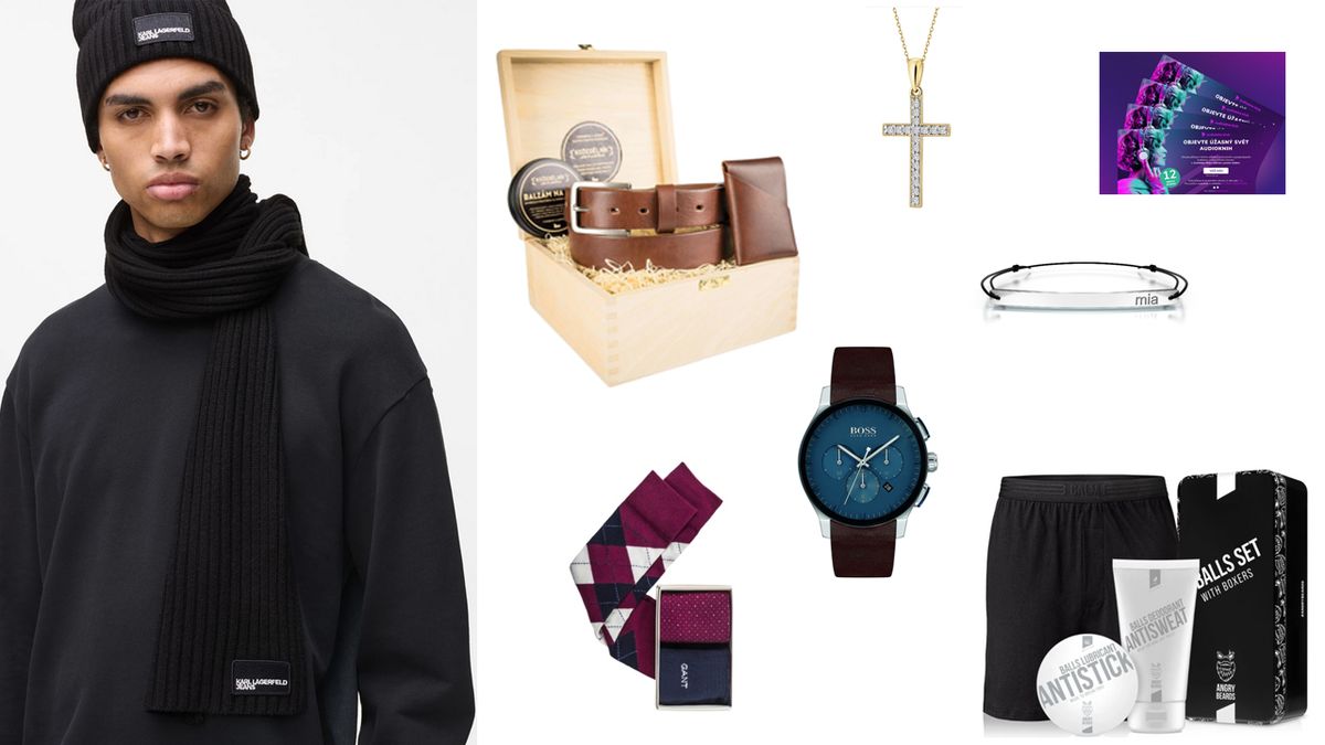 Šála Karl Lagerfeld Jeans KLJ Patch Logo, zalando.cz 2149 Kč; Dárkový set Charles opasek a Vittorio peněženka - výhodný set koženého opasku a peněženky, kozedelnik.cz 1890 Kč; Zlatý přívěsek s diamanty - kříž - 0,10 ct - ryzost 585, Apart 9690 Kč; Dárkové poukazy na audioknihy, audioteka.com/cz od 200 Kč; Rýdl Šperky Náramek šňůrkový Message for Him bílé zlato, cena od 12 830 Kč; Hodinky BOSS, Klenoty Aurum, od 8543 Kč; Ponožky Gant, obchod Gant, Fashion Arena Prague Outlet 699 Kč; Angry Beards Komplexní péče o kule + Volné trenky, pro totální zen v podpalubí, 999 Kč