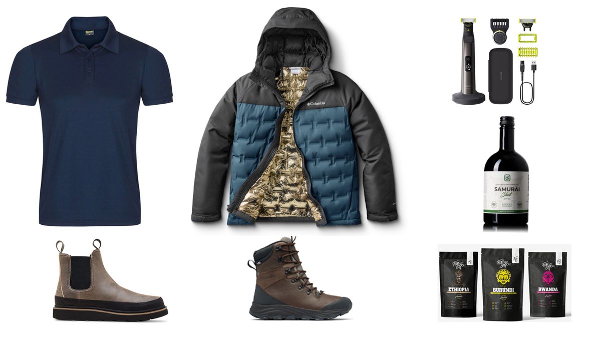 Bambusové Pólo Tričko Doubleface Tmavě Modré, bambutik.cz 1270 Kč; Zimní bunda Columbia Grand Trek III Down Hooded Jacket, péřová bunda nabitá technologiemi, 6299 Kč; Philips OneBlade 360 Face + Body, zastřihne, vytvaruje a oholí vousy všech délek, 2799 Kč; Samurai Shot Matcha Booster shot 0,5 l, čistý extrakt zeleného čaje bez přidaného cukru, vinodivino.cz 419 Kč; Boty Sorel Slabtown 62' Chelsea, 4299 Kč; Boty Columbia Expedionist Extreme, 4499 Kč; Fixi Coffe Afrika Malá cesta, degustační sada kávy (3×100 g), 633 Kč