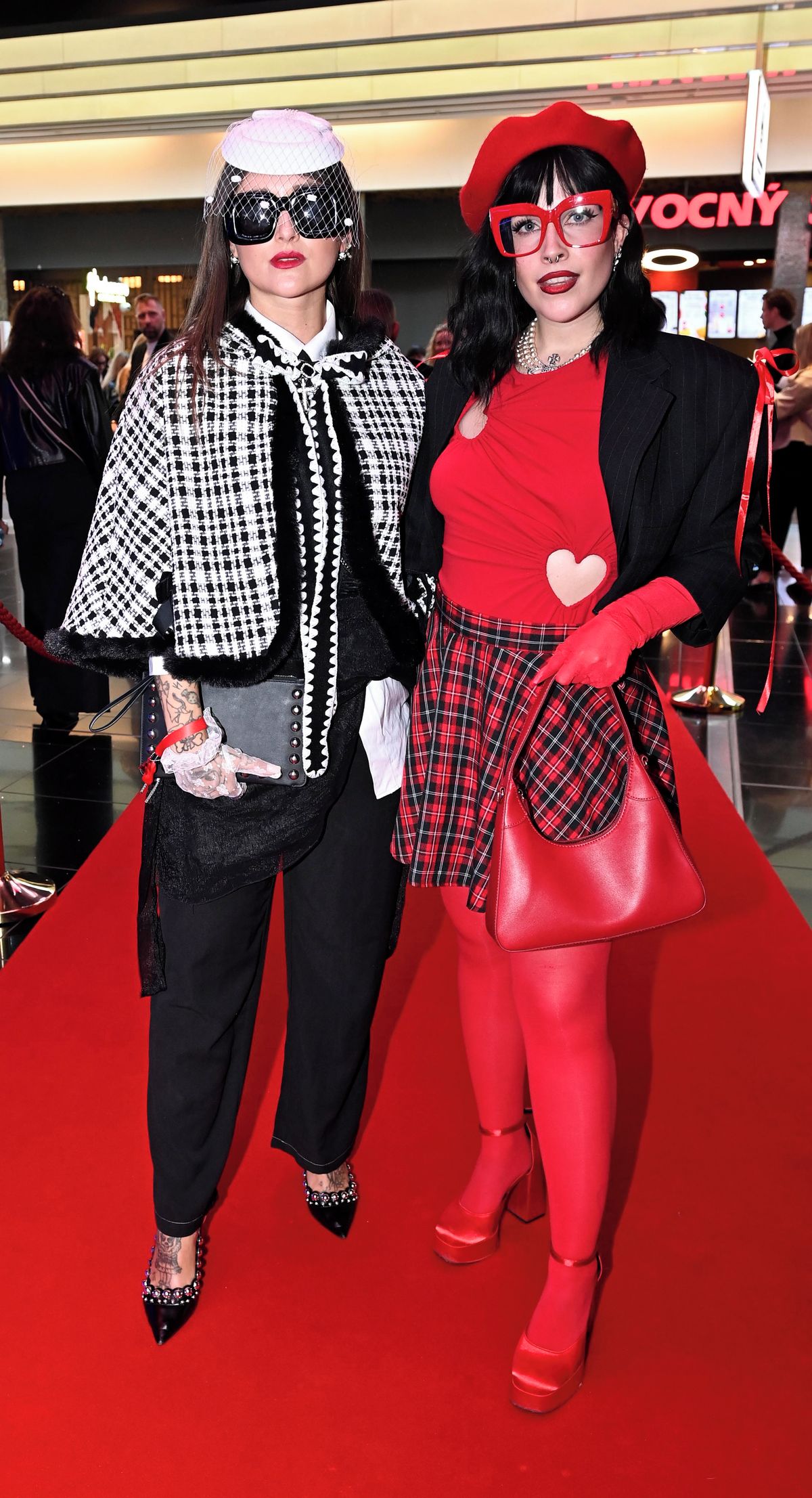 Rukavičky nechyběly ani rapperce Sharlotě, která dorazila s make-up artistkou Dianou Vitikačovou ve velmi výstředním outfitu. Jejich modely byly sice rozdílné, ale v různých detailech spolu ladily. Rozhodně se jim podařilo upoutat pozornost všech přítomných v sále.