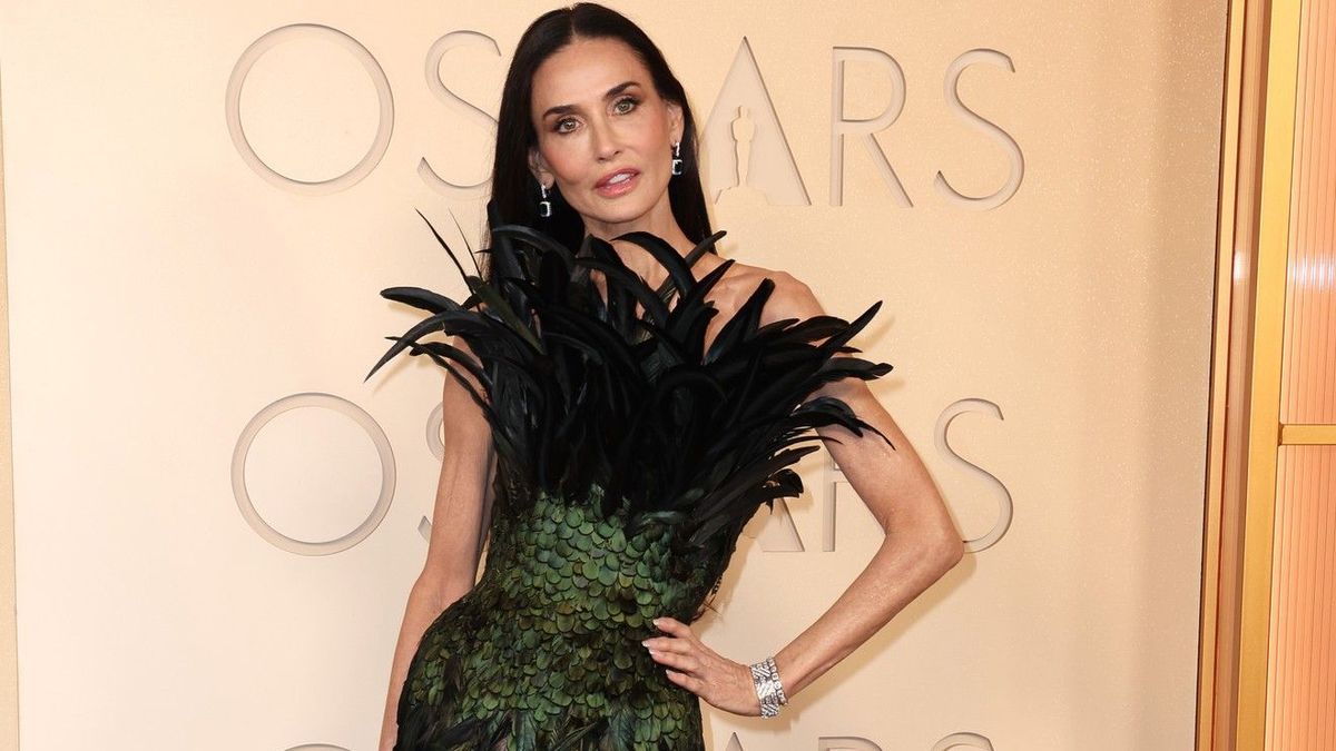 Nejdramatičtější róbu na míru posetou tmavým peřím v černé a smaragdově zelené z módního domu Gucci vynesla Demi Moore.