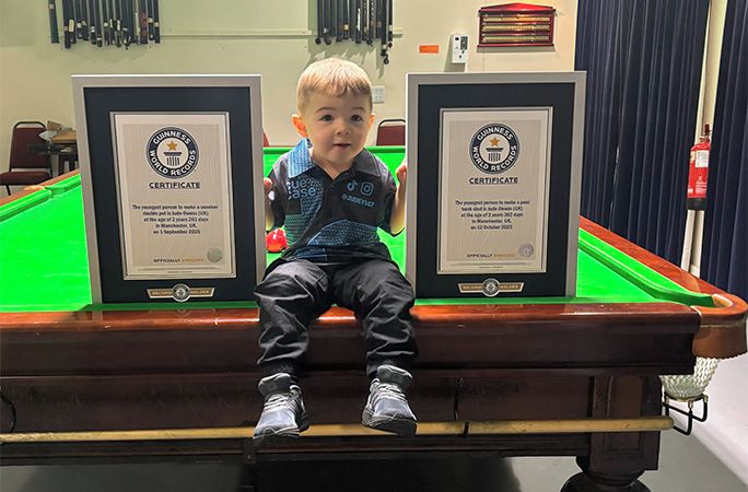 Guinnessova kniha rekordů oznámila v úterý 27. ledna dva nové rekordy. Oba získal Jude Owens, a to za hraní biliardu v Manchesteru v roce 2025. První z nich vytvořil ve věku dvou let a 261 dní, kdy se mu podařilo zahrát snookerový double pot. Druhý rekord přidal o několik týdnů později - ve věku dvou let a 302 dní zvládl bank shot v poolu.