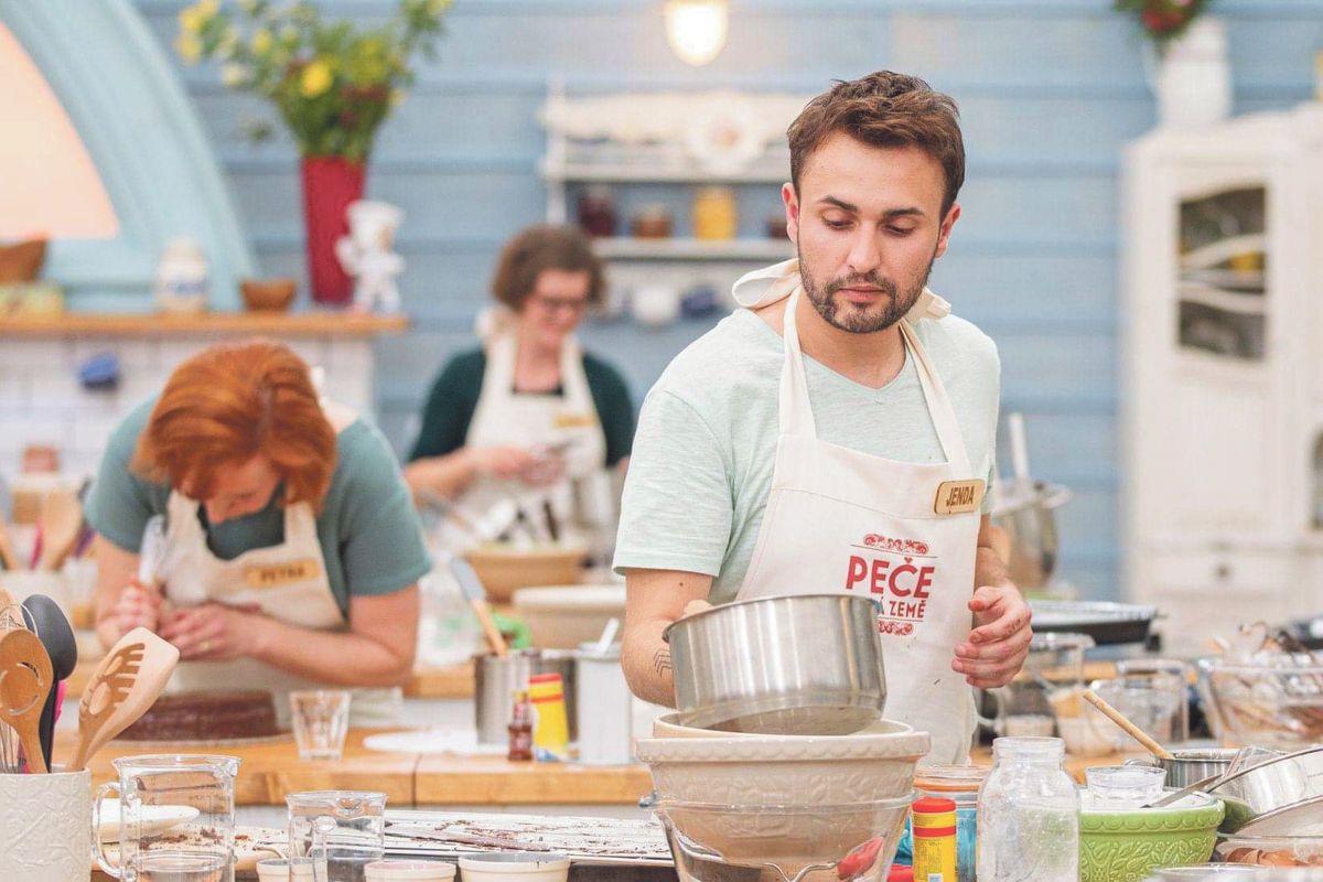 V první řadě soutěže Peče celá země Jenda ohromil porotu větrníky a odpalovaným těstem