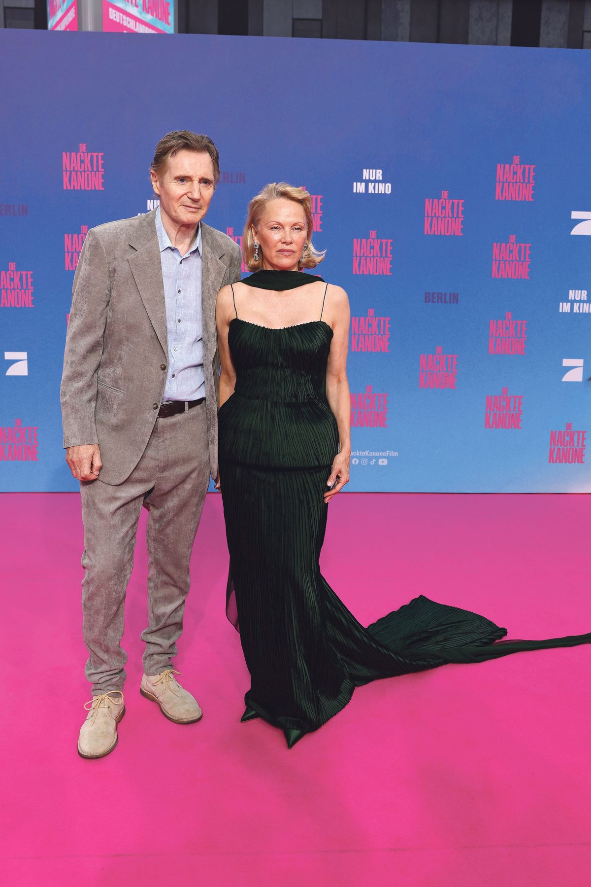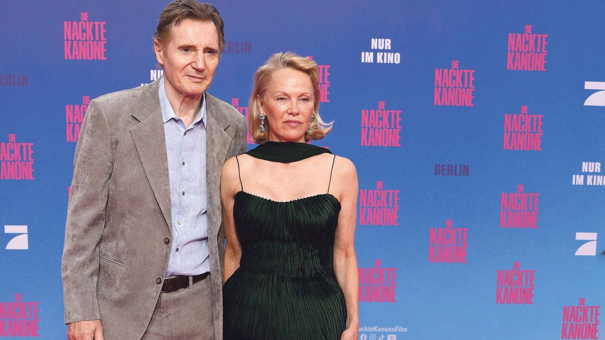 Liam Neeson a Pamela Andersonová na berlínské premiéře nové Bláznivé střely