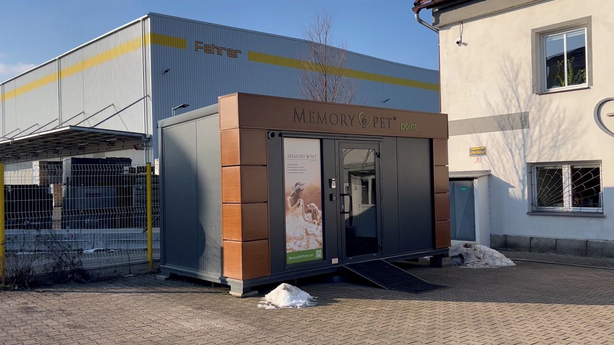 Zvenku to vypadá jako obyčejný kontejnerový modul. Kdybyste nevěděli, co hledáte, klidně kolem projdete. Uvnitř se ale řeší situace, která je pro řadu lidí nepříjemná a zároveň prakticky náročná. Doma zemře pes nebo kočka a majitel potřebuje zařídit kremaci.