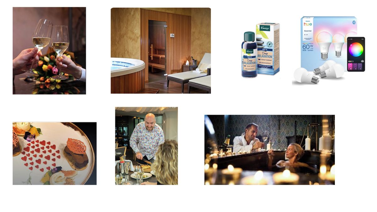 Rezervace na Valentýnské sedmichodové degustační menu do pražské restaurace PRU58 na 14. února 2026 během obědů i večeří, pru58.cz za 1399 Kč/osobu; Poukaz do Spa & Wellness Aquapalas Průhonice na Malé privátní Spa – naprosté soukromí s vířivkou, finskou saunou, s lahví Prosecca a mísou ovoce, 3390 Kč; Kneipp Olej do koupele Hluboké uvolnění, hartmanndirect.com 169 Kč; Chytrá žárovka Philips Hue Essential Bluetooth, 8 W, A60, E27, White and Color Ambiance, pro navození intimní atmosféry, lze ovládat hlasem či aplikací, 1289 Kč; Poukaz na SenSa Valentýnskou večeři 14.2. – 5chodové menu včetně amuse bouche a welcome drinku, sensarestaurant.cz 1650 Kč/os.; Voucher pro 2 osoby na Degustační 5chodové menu Ondřeje Slaniny pro dva v Tančícím domě, Restaurace Ginger a Fred, eshop.gfrest.cz 3780 Kč; Poukaz na Relax v Mariánských Lázních – Nové Lázně, pobyt na 3 noci s polopenzí a wellness procedurami, ensanahotels.com 28 500 Kč