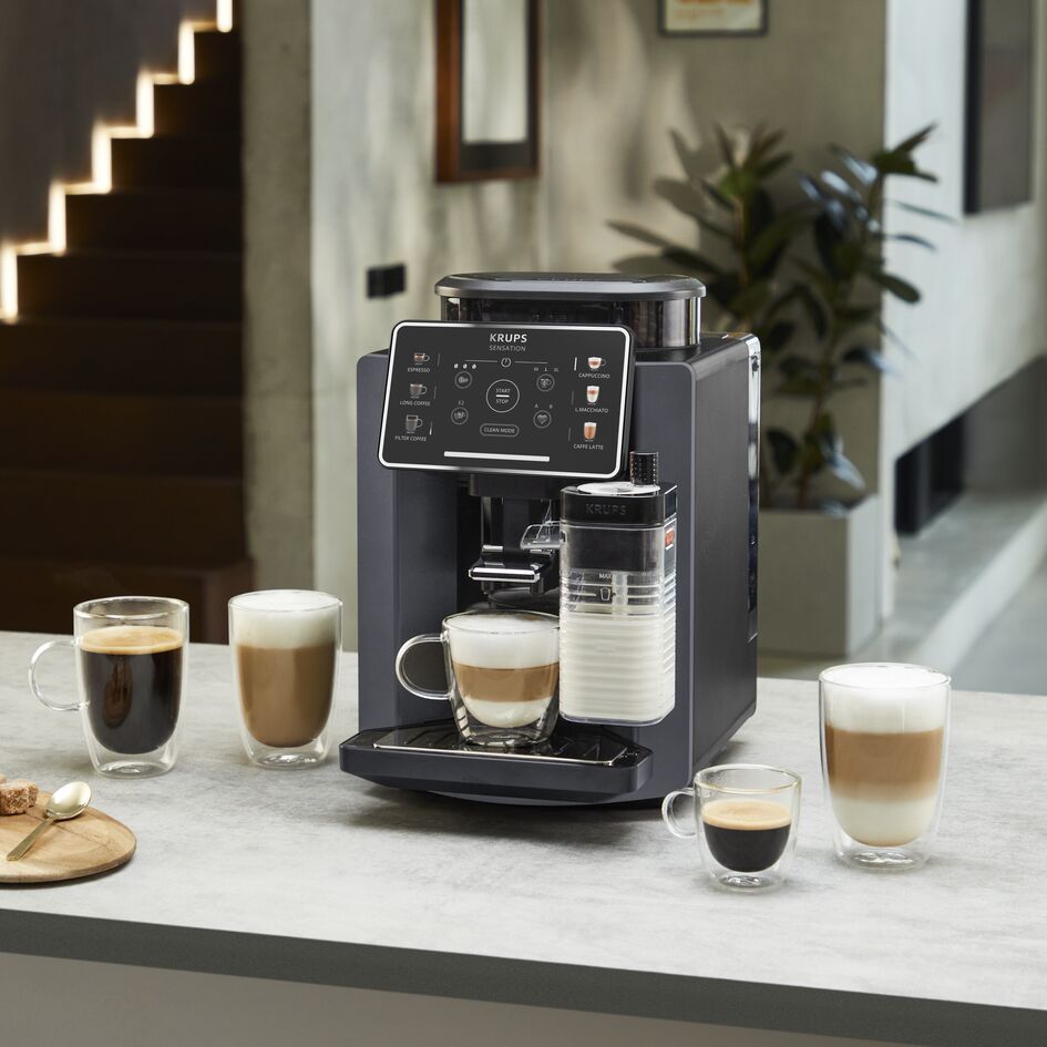 Stylový kávovar KRUPS Sensation Milk potěší každého milovníka kávy. Díky technologii Milk Maestro připraví dokonalé cappuccino i latte stisknutím jednoho tlačítka. Velikost, intenzitu i pěnu si nastavíte přesně podle sebe.Foto: Groupe SEB ČR