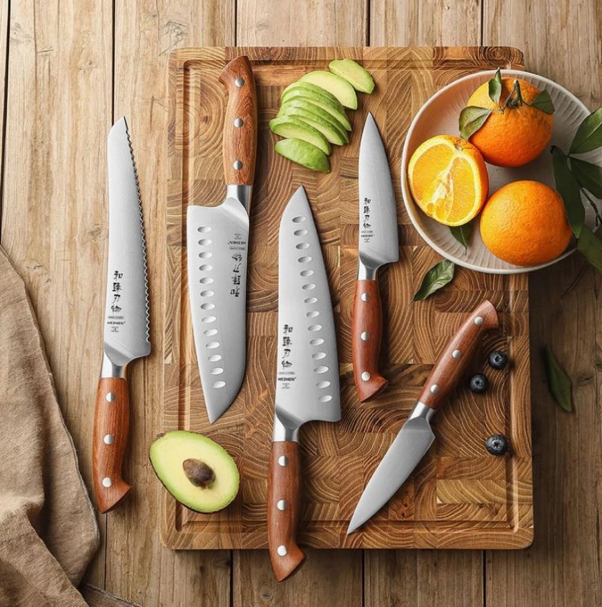 Ruční práce, německá ocel a (ne)skutečně ostré čepele HEZHEN® X02. Každý nůž je originál s dokonalou rovnováhou a rukojetí z červeného dřeva. Tradice, preciznost a elegance v jednom – pro radost z každého řezu.Foto: Damano