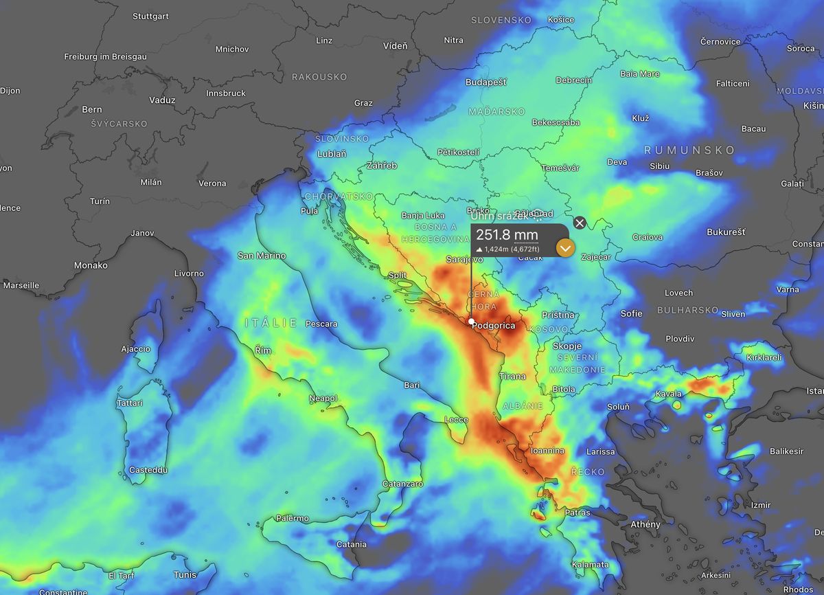 Deště budou trápit obyvatele na pobřeží Jaderského moře celý týden. Do příštího víkendu by místy mohlo spadnout až 400 mm srážek. Nejvíce by mělo napršet v Černé Hoře, Dalmácii, Albánii a na severu Řecka.