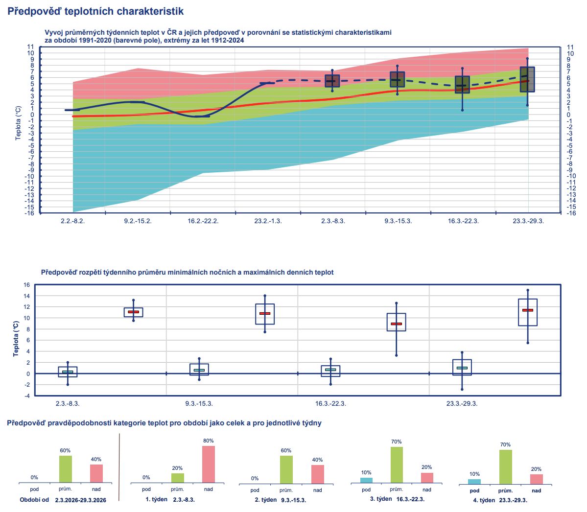 Předpověď teplotních charakteristik na březen