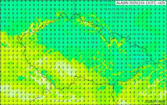 Na Boží hod vánoční se probudíme do mrazivého rána s teplotami mezi -4 a -8 °C, při bezvětří v místech se sněhovou pokrývkou můžeme naměřit až -10 °C. Na obloze během dne převládne skoro jasno až polojasno, v jižní polovině území a ve Slezsku až zataženo s ojedinělým slabým sněžením. Později odpoledne a večer se oblačnost bude rozpouštět až na jasno. Odpolední maxima se udrží slabě pod bodem mrazu, nejčastěji kolem -2 °C a pocitovou teplotu bude až o pět stupňů srážet mírný severovýchodní vítr, který v oblasti Moravské brány a na západě Čech dosáhne nárazů kolem 55 km/h.