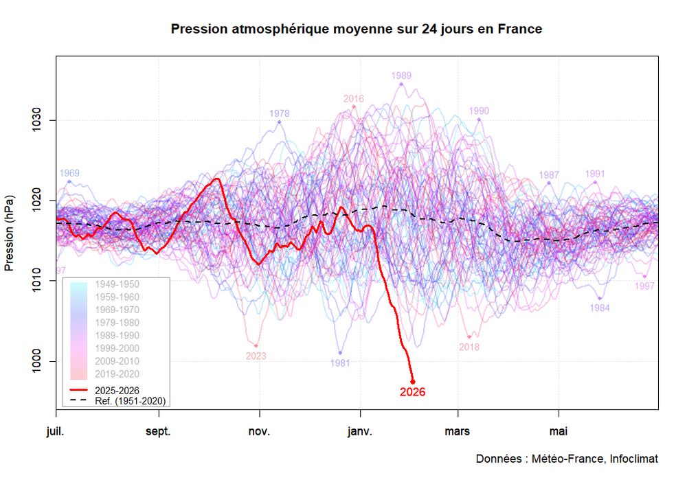 Ve Francii měří v posledních týdnech rekordně nízký tlak vzduchu.