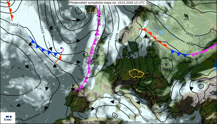 O víkendu počasí v Česku ovlivní oblast nízkého tlaku vzduchu ze Středomoří, ve které k nám od jihu dorazí kromě teplejšího vzduchu i občasné srážky. Většinou půjde o sněžení, ale při oteplení nad nulu se v nejnižších polohách objeví i srážky smíšené nebo i mrznoucí. Na hluboce podchlazeném povrchu po předchozích mrazech se opět může vytvářet i nebezpečná ledovka.