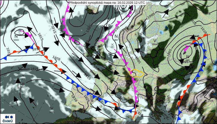 V dalších dnech přes Česko budou přecházet jednotlivé frontální systémy ve spojitosti s tlakovou níží nad Severním mořem. Na obloze tak převládne zataženo a občas zasněží, v polohách pod 500 metrů půjde často o déšť.