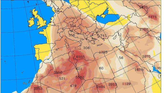 V neděli doputuje tlaková níže ze severní Afriky do středního Středomoří a kolem ní se bude dostávat ještě více prachu ze Sahary až do střední Evropy včetně Česka.