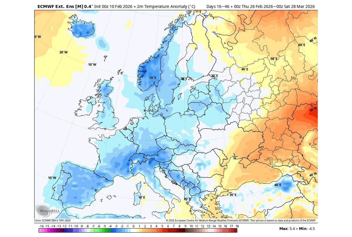To částečně potvrzují i dlouhodobé předpovědi Evropského centra pro střednědobé předpovědi (ECMWF), které ukazují chladnější březen než druhou půlku února.