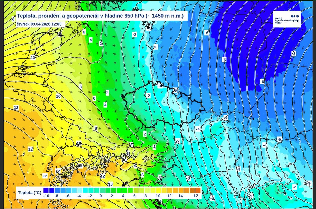 V tuto chvíli je už téměř jisté, že naše území ovlivní spíše studený vzduch. Teploty budou většinou průměrné až mírně podprůměrné. Blízkost rozhraní mezi vzduchovými hmotami navíc přinese výrazné teplotní rozdíly i více než 5 °C mezi teplejším západem a chladnějším východem.