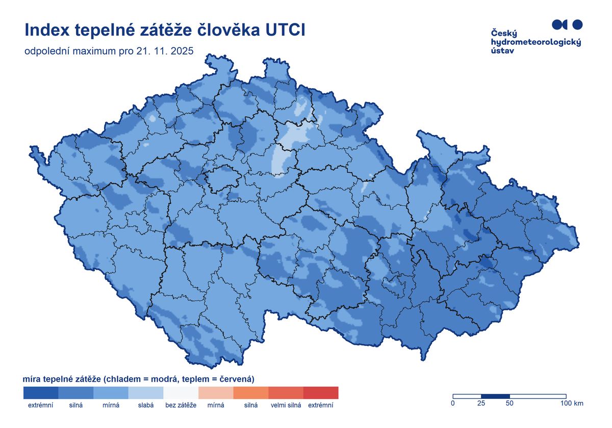 Teploty budou nejčastěji kolem nuly, pocitově však bude kvůli větru výrazně chladněji. V noci klesnou na 0 až –4 °C, na severozápadě až k –7 °C. Severní vítr bude foukat rychlostí 2 až 6 m/s, na Moravě a ve Slezsku však bude silnější s nárazy až 15 m/s (55 km/h).