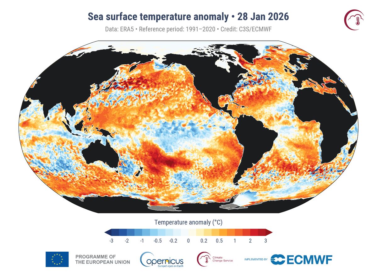 Už od konce podzimu lze pozorovat postupné slábnutí chladné teplotní anomálie. Pasáty navíc na začátku roku dále zeslábly a ukončení jevu La Niña tak s vysokou pravděpodobností nastane ještě před koncem zimy.