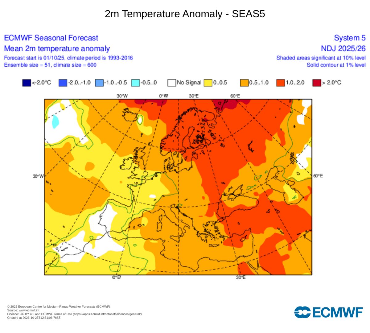 Podle sezónních předpovědí by v Evropě nemusel být s vysokými teplotami jen listopad, ale také prosinec a leden. Toto období jako celek by mohlo být podle předpovědi modelu Evropského předpovědního centra nadprůměrné o více než 1 °C ve východní a severní Evropě.