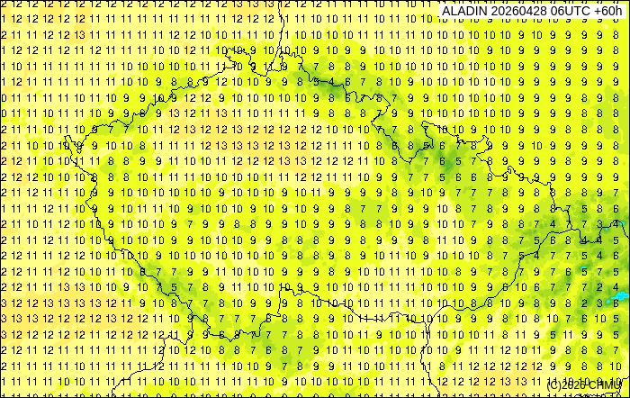 Teploty vzduchu během čtvrteční osmé hodin večerní podle modelu ALADIN