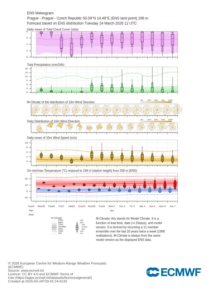 Meteogram modelu ECMWF zobrazuje míru nejistoty pro následujících 15 dní