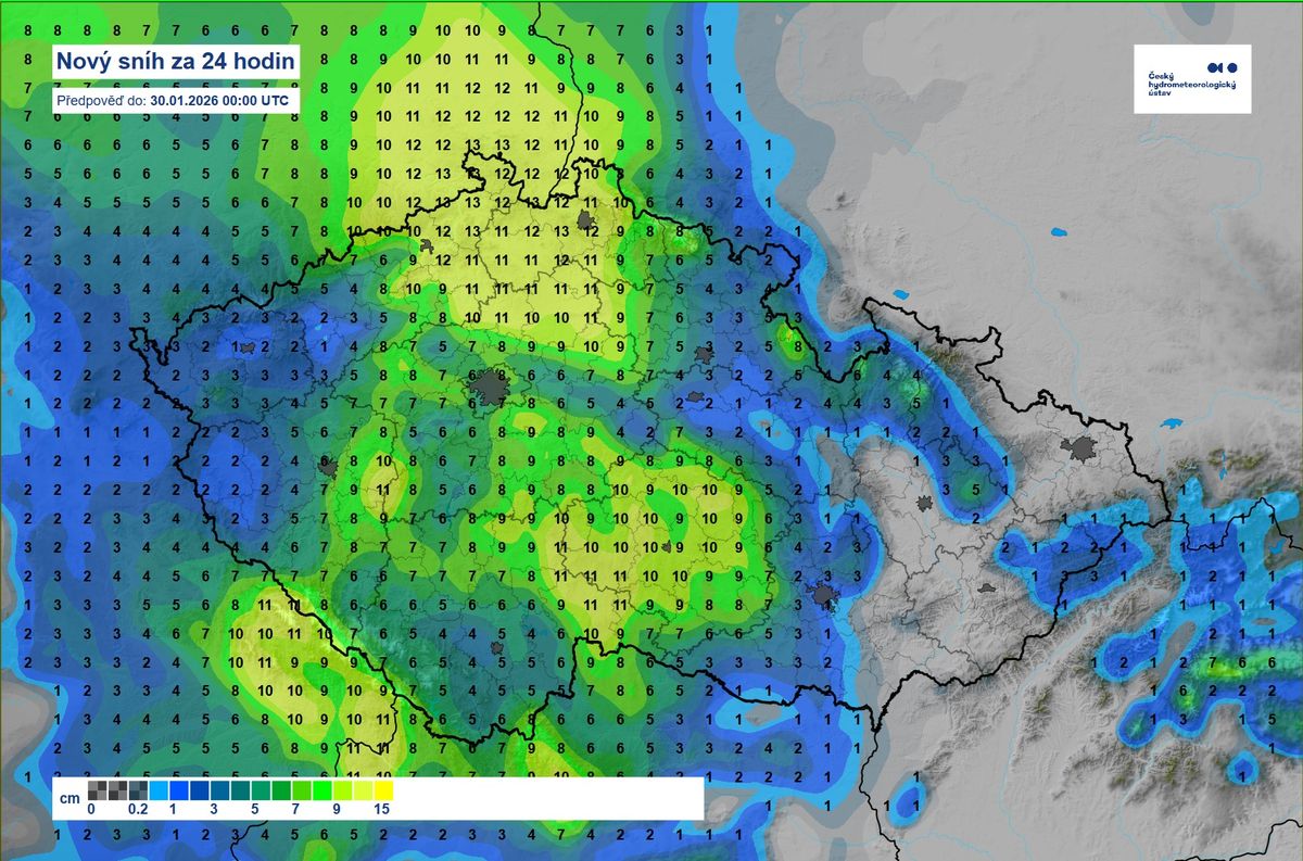 Přesná hranice sněžení se bude v týdnu ještě upřesňovat. Zatím to vypadá, že v Čechách by mohlo napadnout až 10 cm.