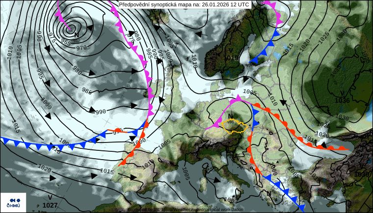 Středa bude po většinu dne se zataženou oblohou. Ráno na západě Čech může pršet, zhruba od 500 metrů sněžit, přes den může ojediněle mrholit nebo slabě sněžit i jinde.