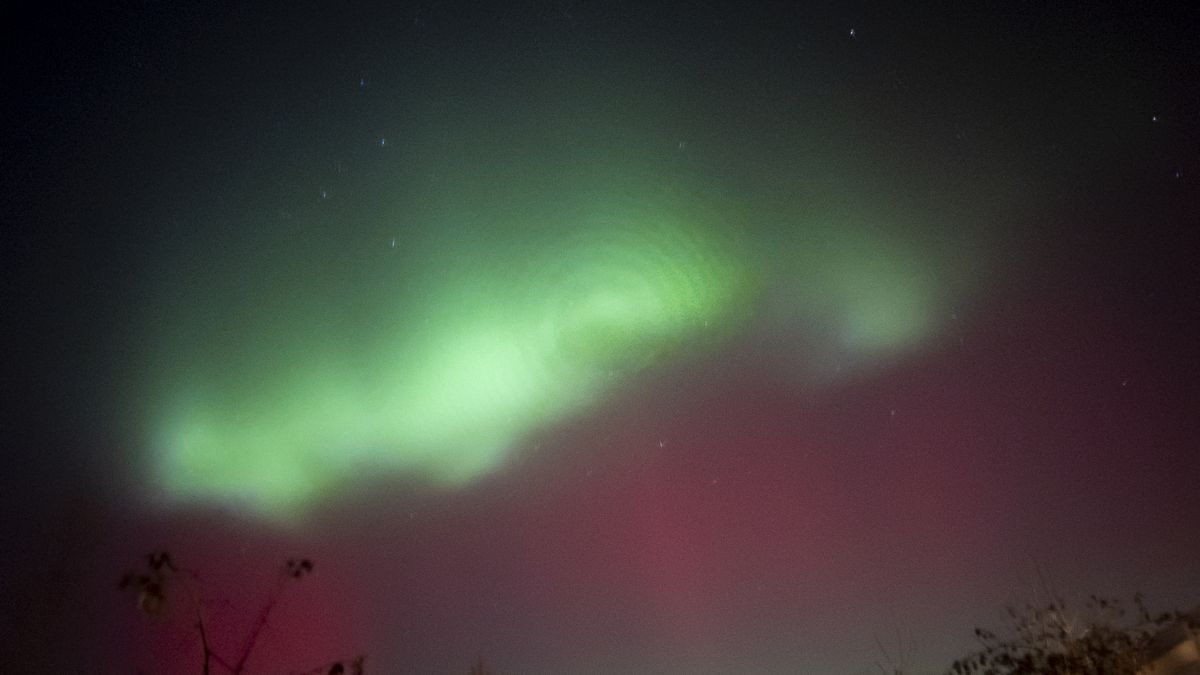 Dvoubarevná polární záře v celé své kráse.