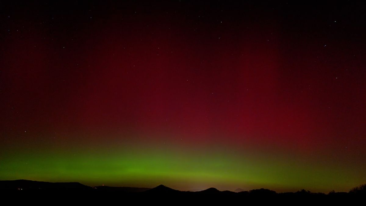 Polární záře červených odstínů začala být nad severním obzorem fotograficky zaznamenatelná již okolo 20:30 a svého vrcholu dosáhla krátce po 22. hodině, kdy ji lidé mohli snadno spatřit pouhýma očima i z centra velkých měst, včetně Prahy.